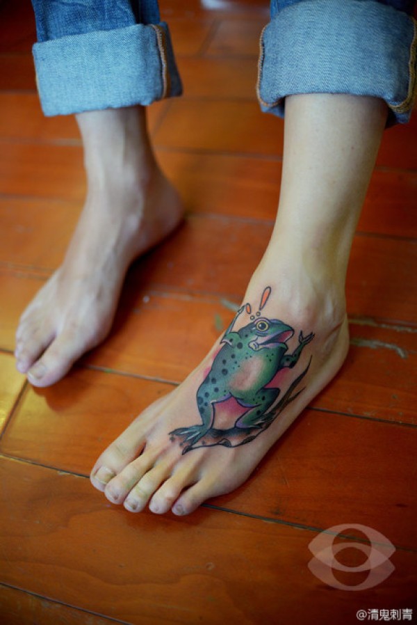脚背时尚很帅的青蛙纹身图案_脚部纹身图案大全_纹身图吧