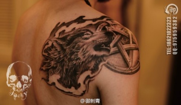 男生后肩背帅气很酷的狼头纹身图案_肩部纹身图案大全_纹身图吧