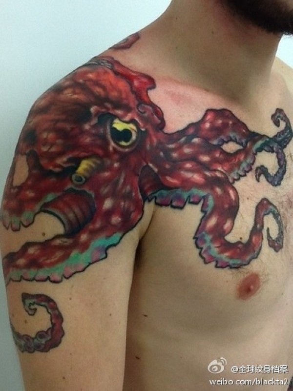 男生肩膀处超帅的章鱼纹身图案_肩部纹身图案大全_纹身图吧