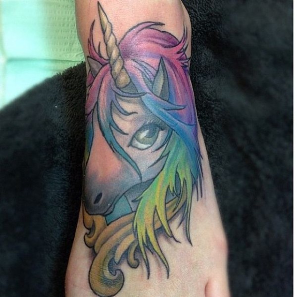 分享一款个性的脚背独角兽纹身图案_脚部纹身图案大全_纹身图吧