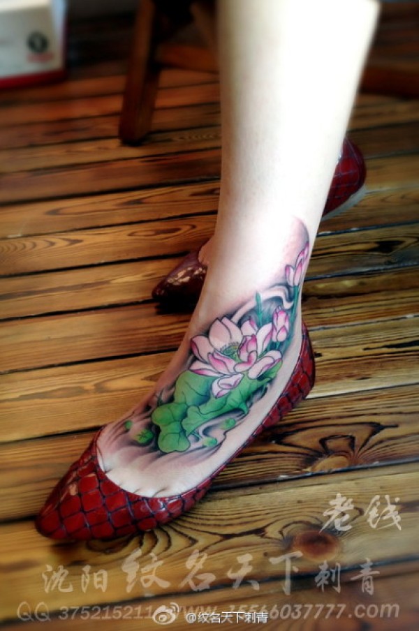 美女脚背潮流唯美的莲花纹身图案_脚部纹身图案大全_纹身图吧