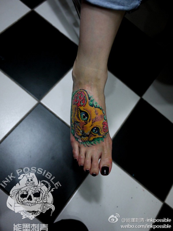 美女脚背时尚可爱的狮子纹身图案_脚部纹身图案大全_纹身图吧