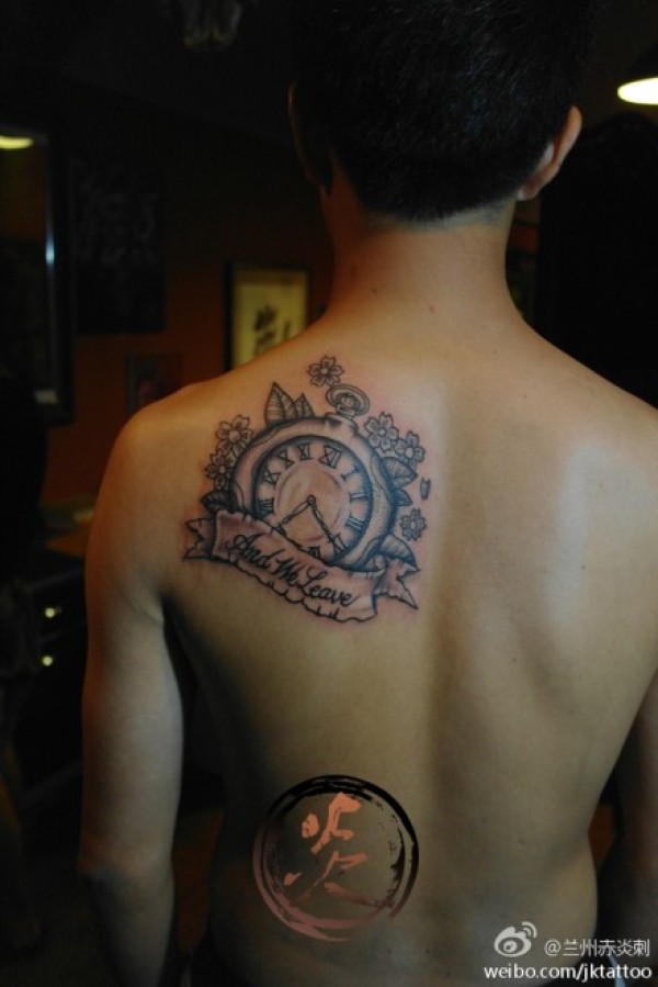 男生后肩背时尚经典的怀表纹身图案_肩部纹身图案大全_纹身图吧