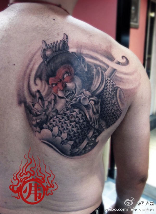 男人肩背潮流很酷的孙悟空纹身图案_肩部纹身图案大全_纹身图吧