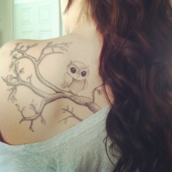 推荐一款肩胛骨猫头鹰纹身图案_肩部纹身图案大全_纹身图吧