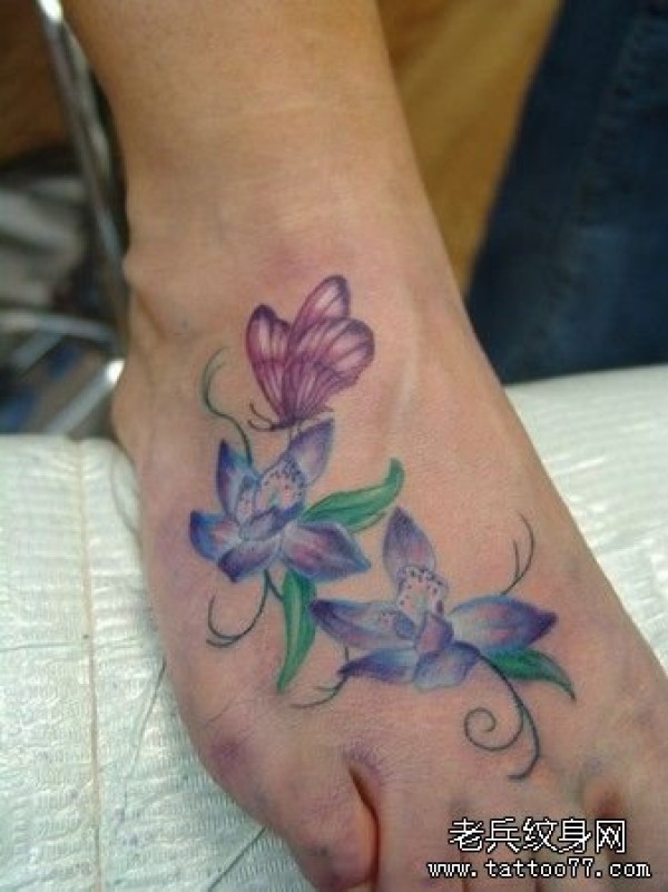 推荐一款脚背蝶恋花纹身图案_脚部纹身图案大全_纹身图吧