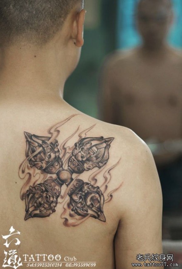 男生后肩背潮流经典的黑灰金刚杵纹身图案_肩部纹身图案大全_纹身图吧