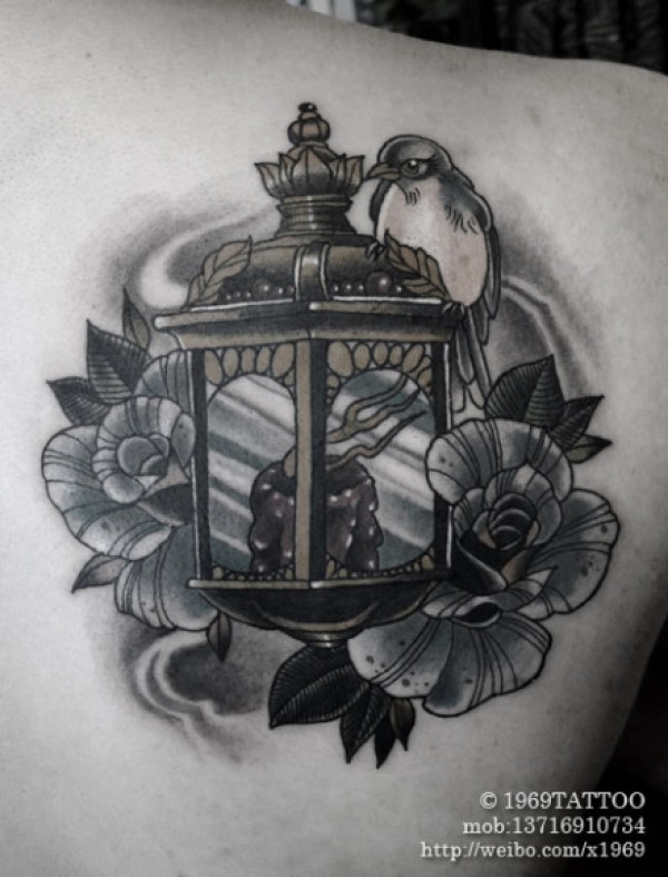男生后肩背经典时尚的灯纹身图案_肩部纹身图案大全_纹身图吧