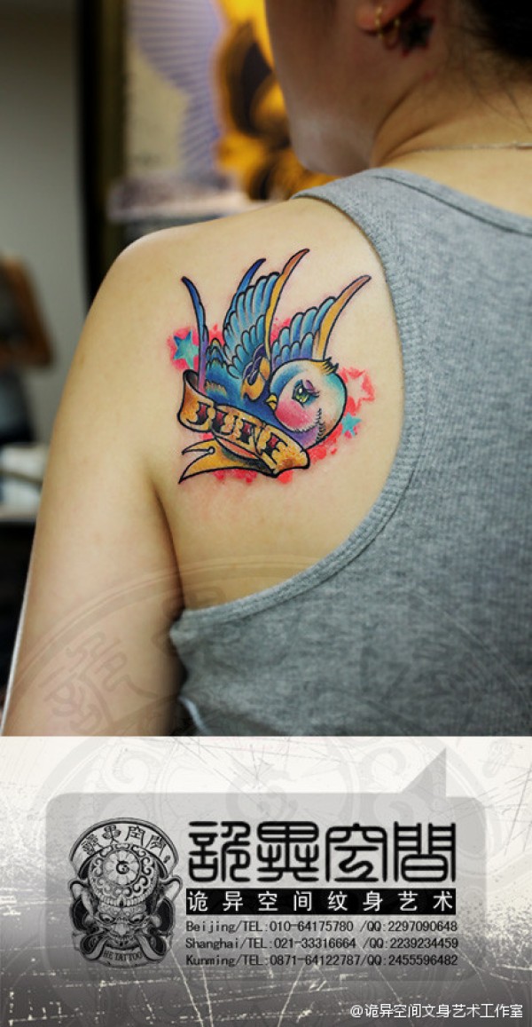美女肩膀可爱时尚的小燕子纹身图案_肩部纹身图案大全_纹身图吧
