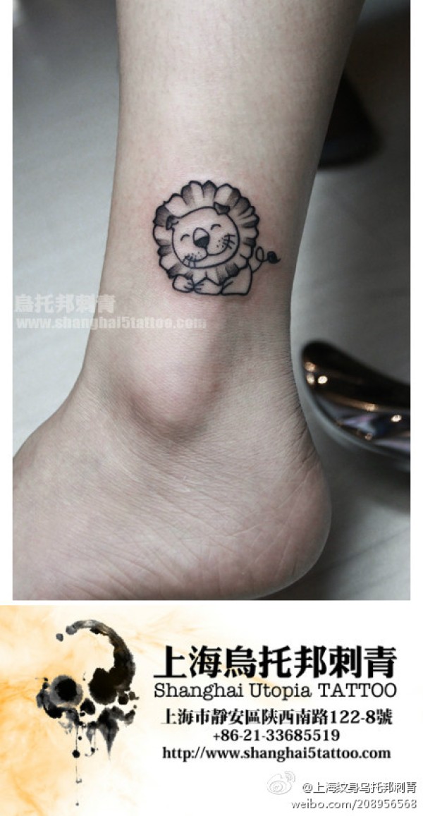 脚踝处可爱的小狮子纹身图案_脚部纹身图案大全_纹身图吧