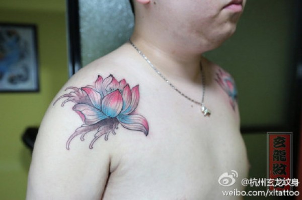 肩膀处唯美清淡的莲花纹身图案_肩部纹身图案大全_纹身图吧