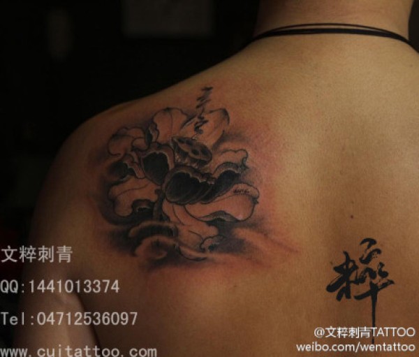 后肩背唯美流行的莲花纹身图案_肩部纹身图案大全_纹身图吧