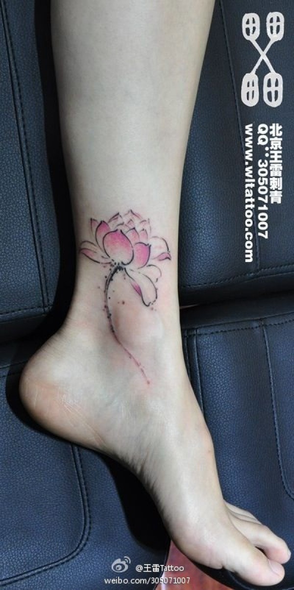 美女脚踝处唯美漂亮的莲花纹身图案_脚部纹身图案大全_纹身图吧