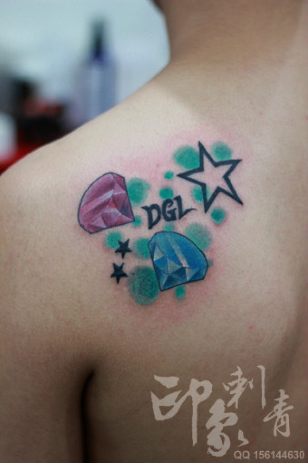 男生肩背精美流行的彩色钻石纹身图案_肩部纹身图案大全_纹身图吧