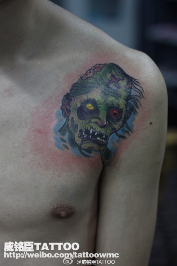 男生肩膀处帅气时尚的僵尸纹身图案_肩部纹身图案大全_纹身图吧