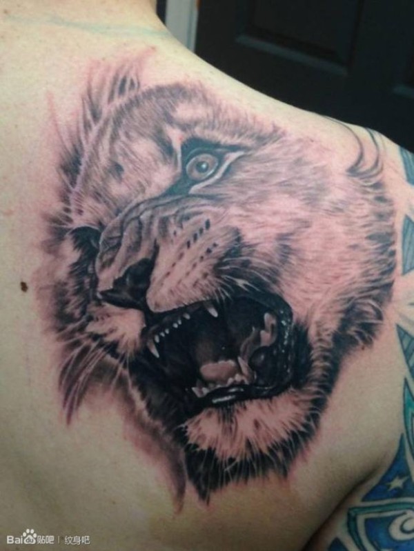 男人肩背霸气凶悍的狮头纹身图案_肩部纹身图案大全_纹身图吧