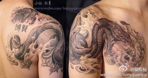 时尚帅气的过肩蛇纹身图案_肩部纹身图案大全_纹身图吧