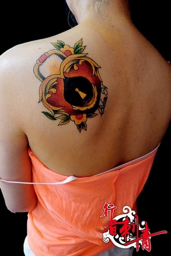那肩背漂亮时尚的爱心锁纹身图案_肩部纹身图案大全_纹身图吧