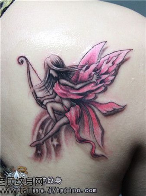 美女肩背彩色小精灵纹身图案_肩部纹身图案大全_纹身图吧