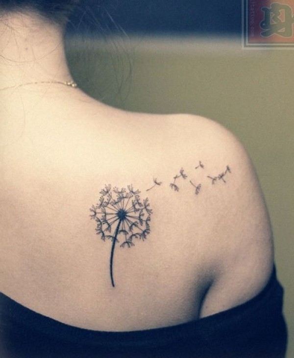 女孩子肩背好看的蒲公英纹身图案_肩部纹身图案大全_纹身图吧