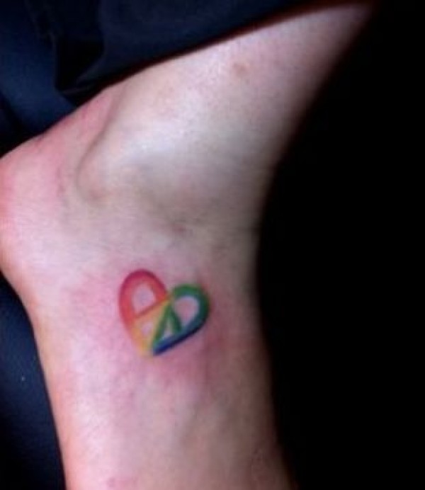 女孩子脚背反战符号与爱心纹身图案_脚部纹身图案大全_纹身图吧