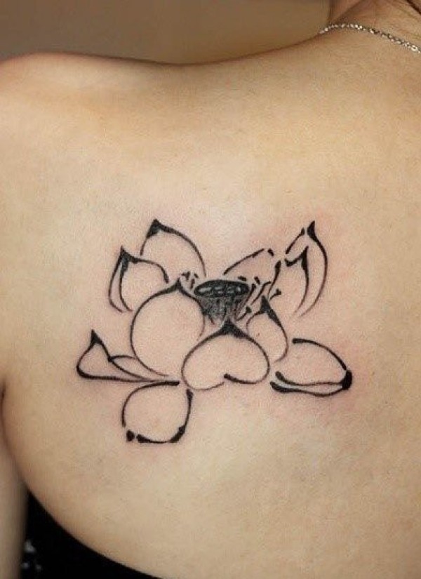 美女肩背水墨画风格莲花纹身图案_肩部纹身图案大全_纹身图吧