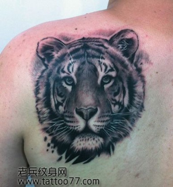 男人肩背帅气的虎头纹身图案_肩部纹身图案大全_纹身图吧