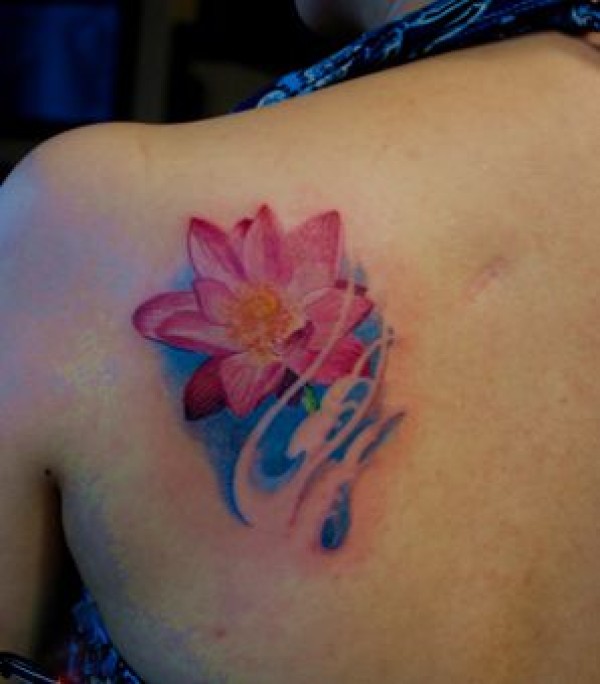 女孩子肩背彩色莲花纹身图案_肩部纹身图案大全_纹身图吧
