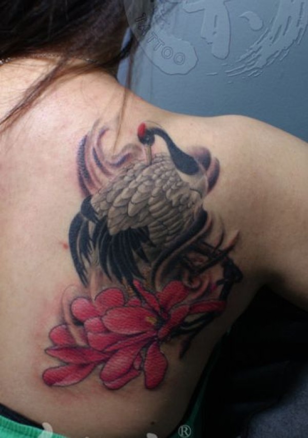 女孩子肩背白鹤纹身图案_肩部纹身图案大全_纹身图吧