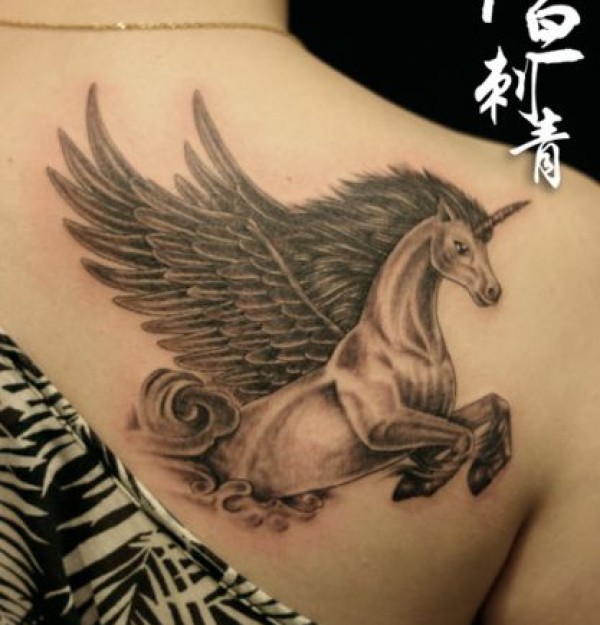女孩子肩部帅气的独角兽纹身图案_肩部纹身图案大全_纹身图吧