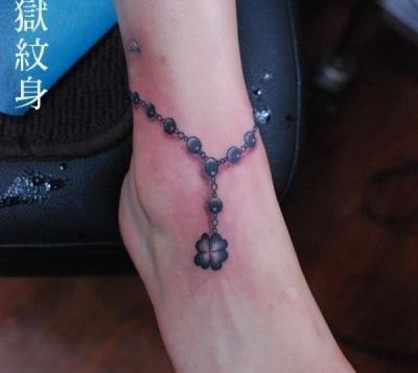 女孩子脚部四叶草脚链纹身图案_脚部纹身图案大全_纹身图吧