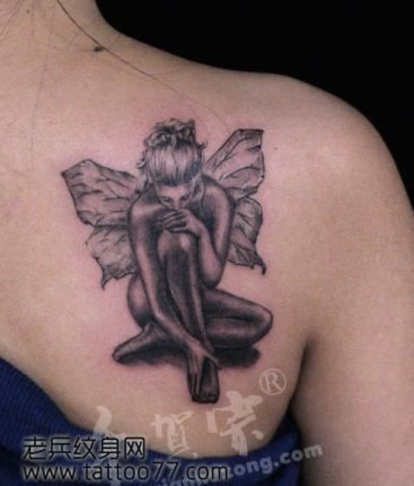 女孩子肩部一款小精灵纹身图案_肩部纹身图案大全_纹身图吧