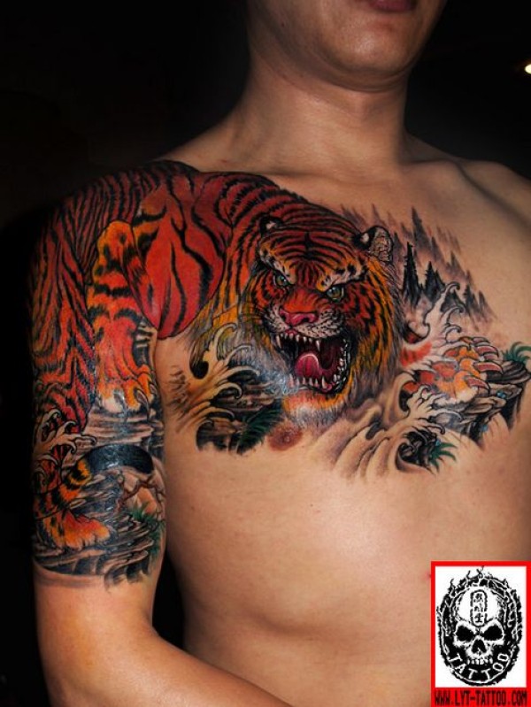 帅气的过肩老虎纹身图案_肩部纹身图案大全_纹身图吧