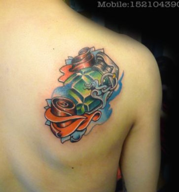 肩背一款时尚的手雷纹身图案_肩部纹身图案大全_纹身图吧