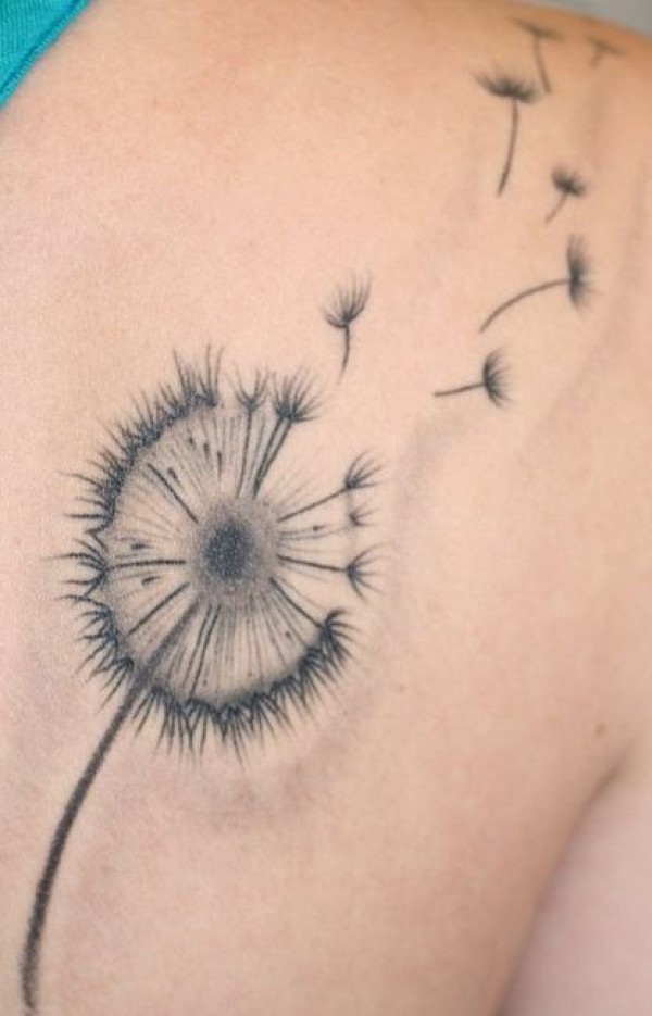 女孩子肩背流行的蒲公英纹身图案_肩部纹身图案大全_纹身图吧
