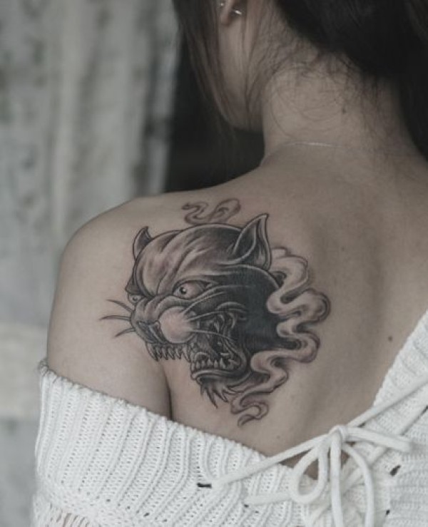 女孩子肩背豹子头纹身图案_肩部纹身图案大全_纹身图吧