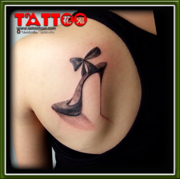 美女肩部时尚的高跟鞋纹身图案_肩部纹身图案大全_纹身图吧