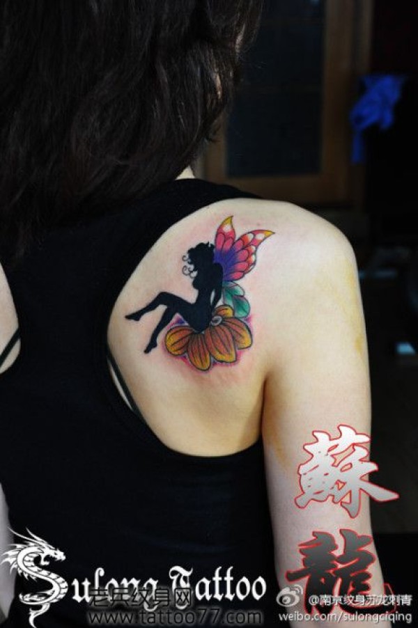 美女肩部好看经典的精灵纹身图案_肩部纹身图案大全_纹身图吧