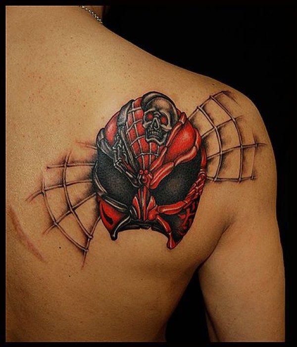 湖北咸宁专业纹身店后肩背面具蜘蛛纹身图案_肩部纹身图案大全_纹身图吧