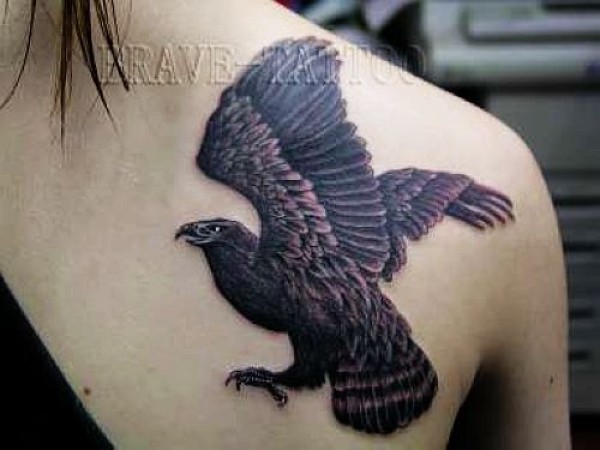 湖北武汉纹身店肩背老鹰纹身图案图片大全_肩部纹身图案大全_纹身图吧