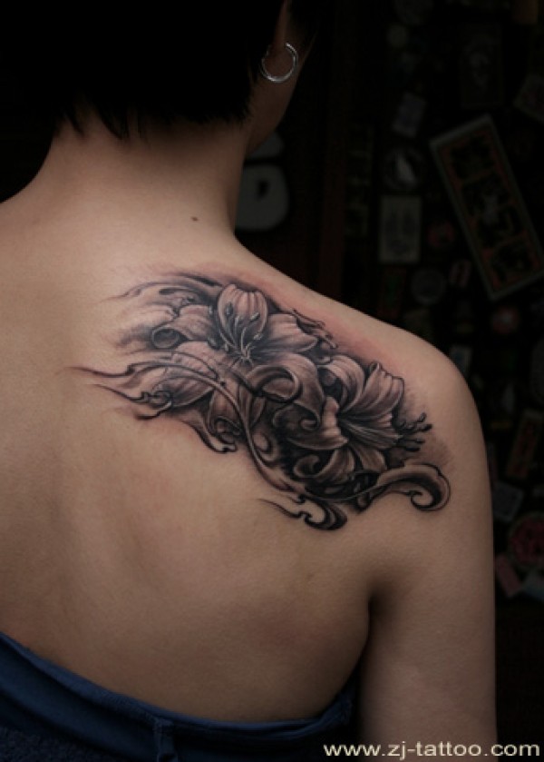 肩膀文身图案大全肩膀百合纹身图案图片_肩部纹身图案大全_纹身图吧