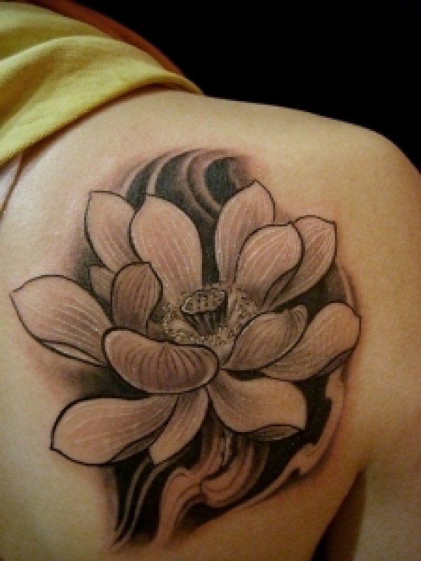 武汉专业文身店后肩背莲花纹身图案图片大全_肩部纹身图案大全_纹身图吧