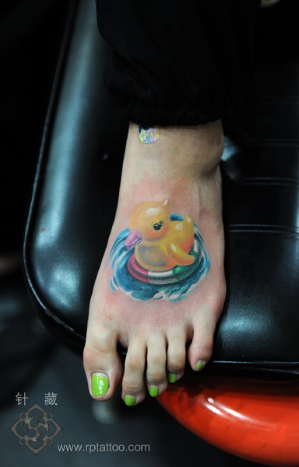 可爱纹身图案大全脚背可爱鸭子纹身图案图片_脚部纹身图案大全_纹身图吧