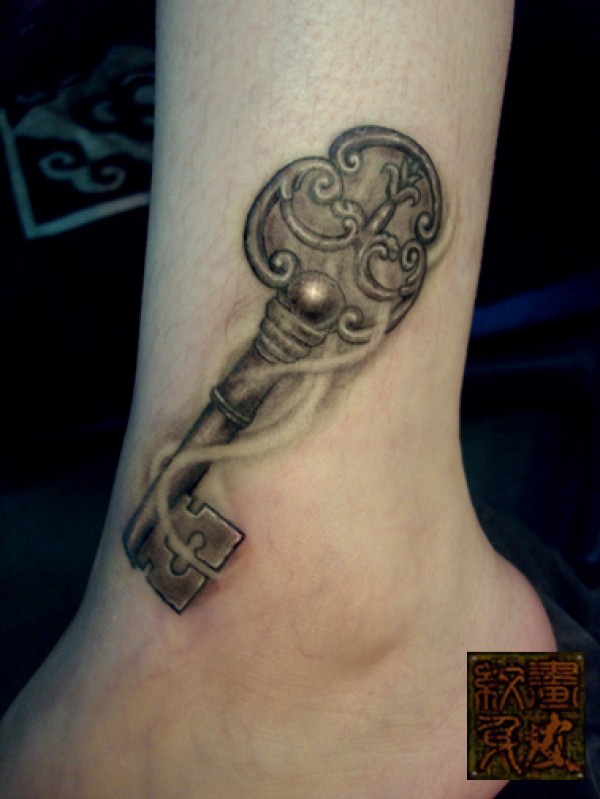 武汉专业文身店脚部钥匙纹身图案图片_脚部纹身图案大全_纹身图吧