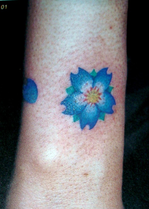 武汉刺青店脚部蓝色樱花纹身图案图片_脚部纹身图案大全_纹身图吧