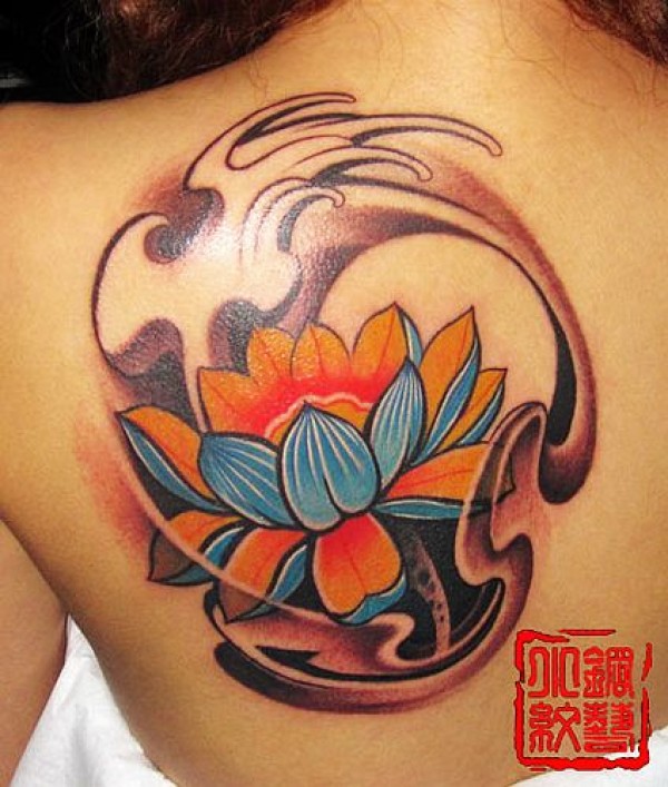 湖北咸宁纹身店后肩背莲花浪花纹身图案_肩部纹身图案大全_纹身图吧