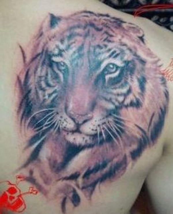 老虎纹身图案肩部老虎虎头纹身图案_肩部纹身图案大全_纹身图吧