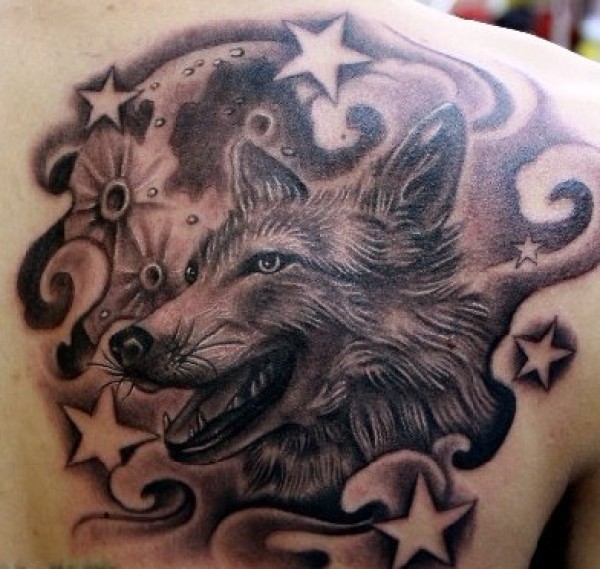 肩部狼五角星纹身图案纹身图片_肩部纹身图案大全_纹身图吧