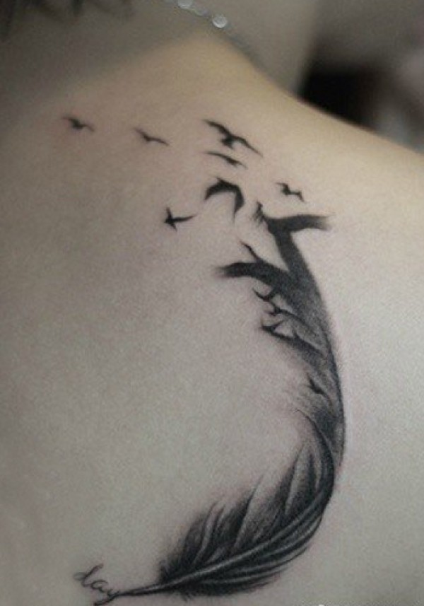 肩背精美的羽化燕纹身_肩部纹身图案大全_纹身图吧