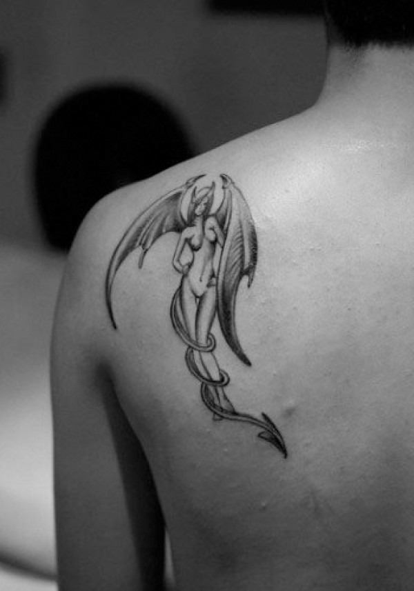 肩背恶魔美女纹身_肩部纹身图案大全_纹身图吧